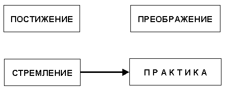 В зависимости от исходных мировоззренческих установок конкретных эзотерических школ преображение рассматривается либо в качестве цели духовного развития, наряду с постижением, либо в качестве сопутствующего ему побочного эффекта. В любом случае преображение и постижение относятся, условно говоря, к верхнему уровню рассматриваемой системы уровню целей или следствий. Стремление и практика составляют нижний ее уровень уровень средств или причин (см. рис.1).