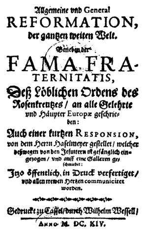Фрагмент титульного листа кн.: Иоахим Фриций. Высшее Благо: Истинная Магия, Каббала и Алхимия истинных Братьев Розового Креста (Summum Bonum, Quod est Verum Magiae, Cabalae, Alchymiae Verae, Fratrum Roseae Crucis verorum Subjectum), Франкфурт, 1629. A Christian Rosencreutz Anthology. P. 204.