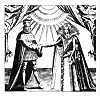 "Алхимическая Королевская Свадьба". Гравюра из кн.: Даниэль Стольций. Химический Цветник. Франкфурт, 1624. Перепечатана Стольцием с кн.: М.Майер. Золотой Треножник. Франкфурт, 1618 (персонажам приданы черты сходства с Фридрихом V и Елизаветой). A Christian Rosencreutz Anthology. P. 442.